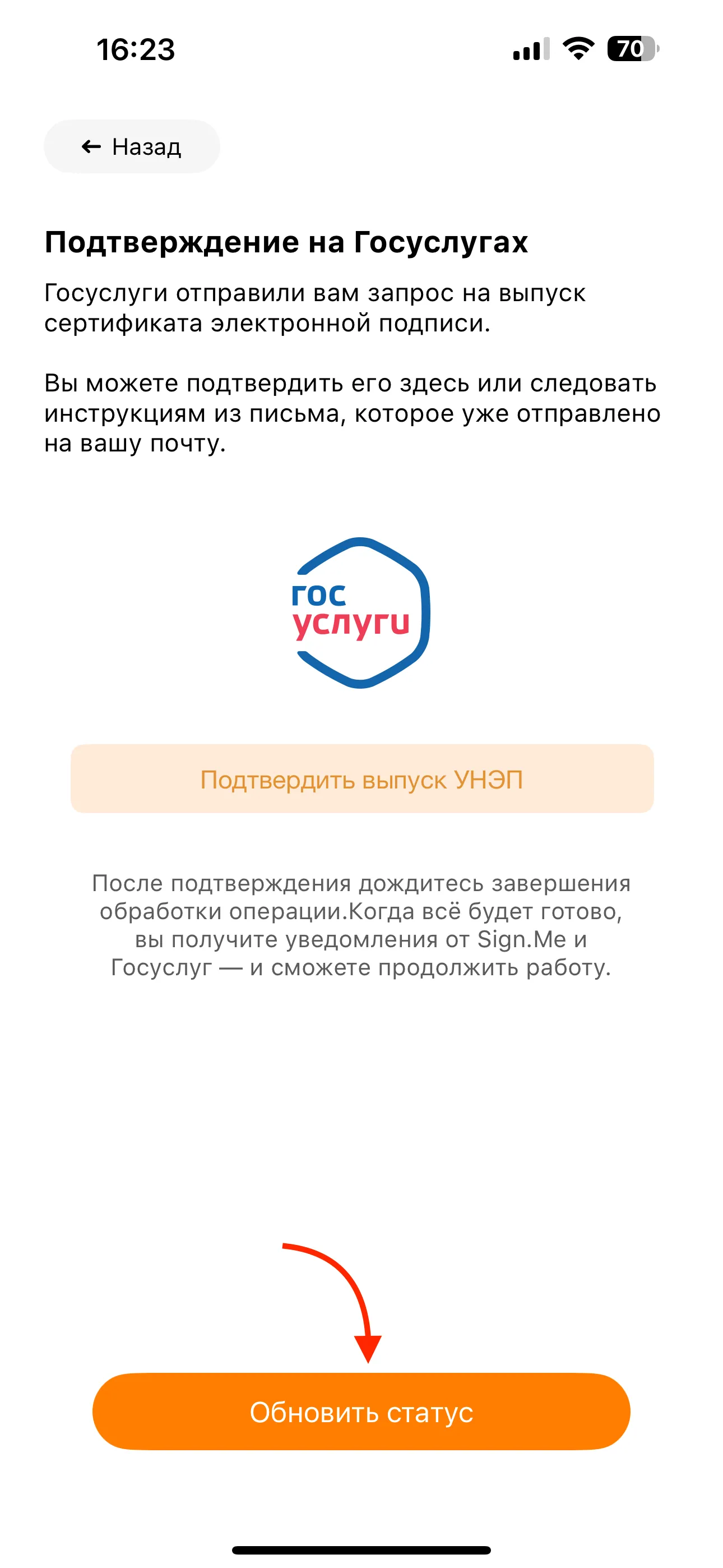 14. Вернитесь в приложение Sign.Me, если вы перешли в приложение Госуслуг