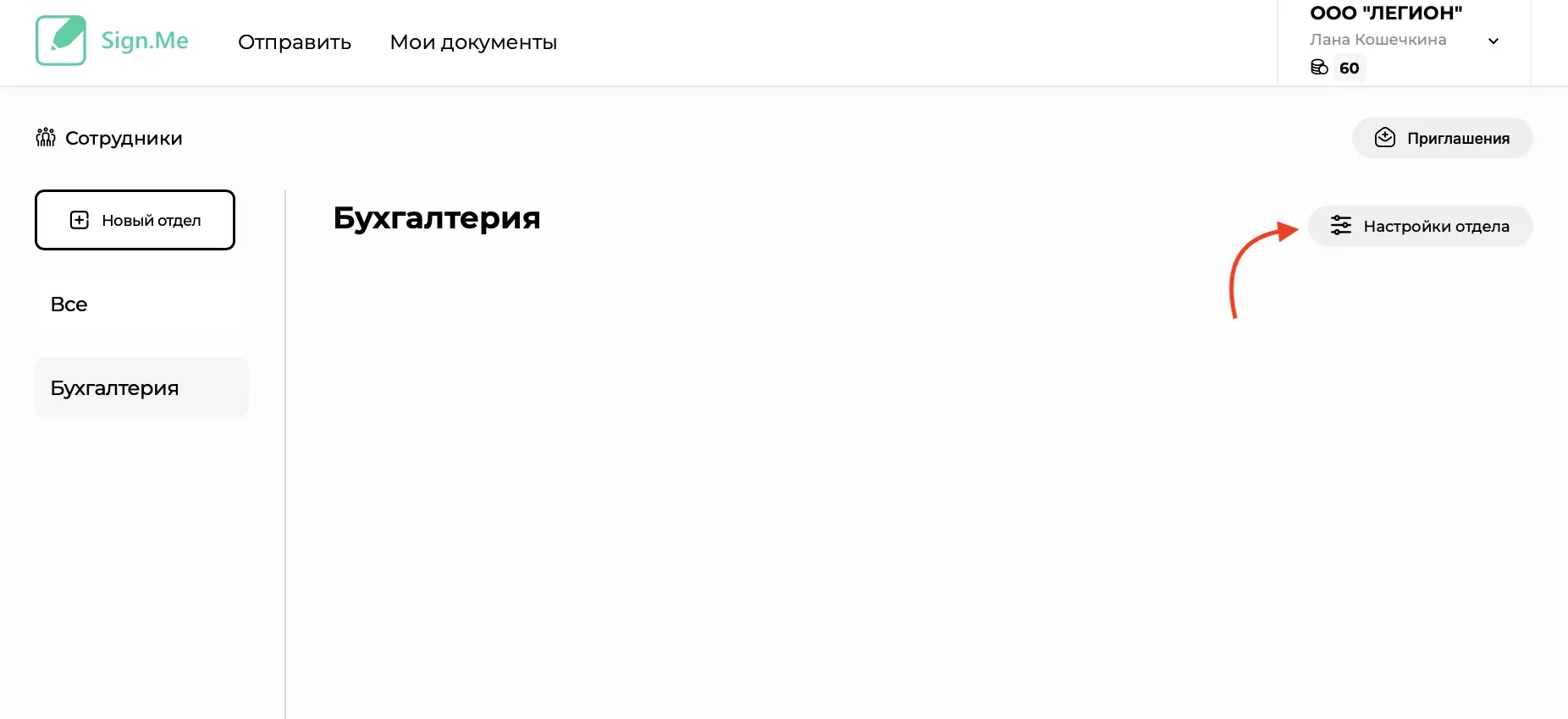 4. Введите название отдела, после чего нажмите «Создать отдел»