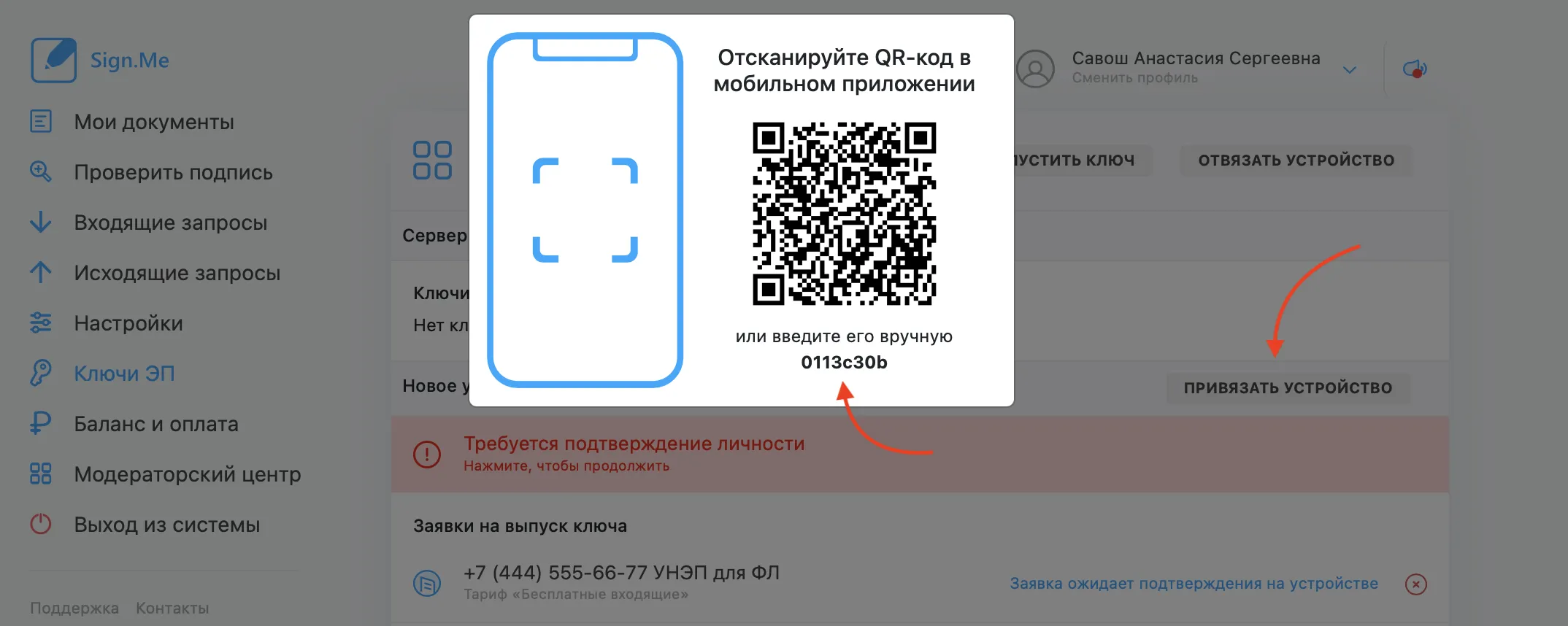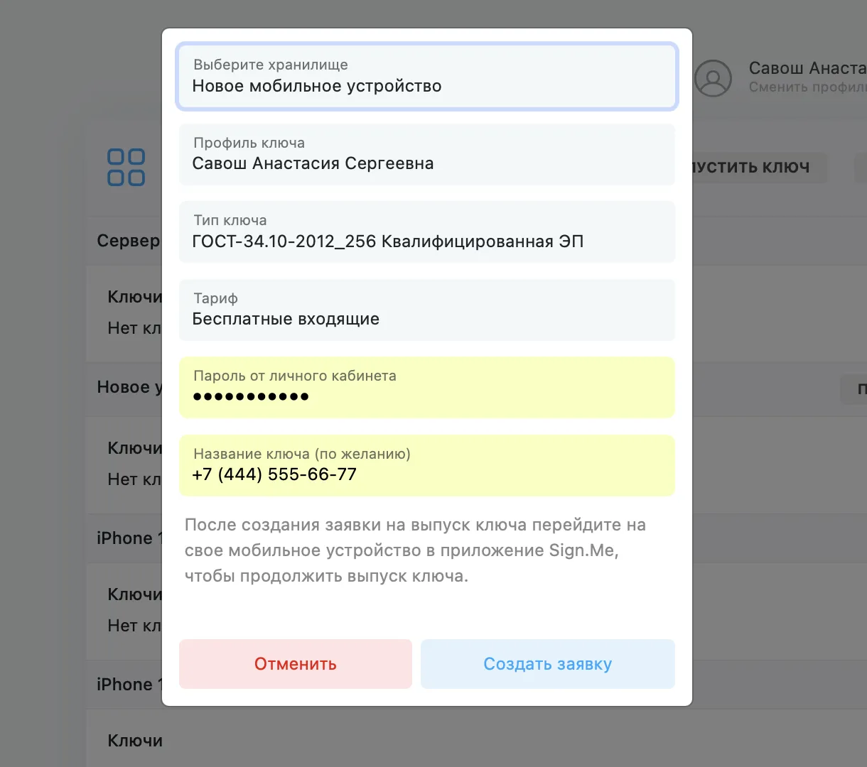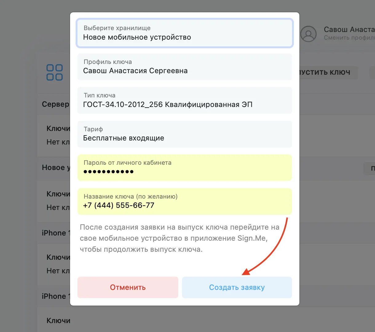 Вы можете использовать любое удобное для вас название (например, «Ключ для iPhone», «УКЭП», «УНЭП»).